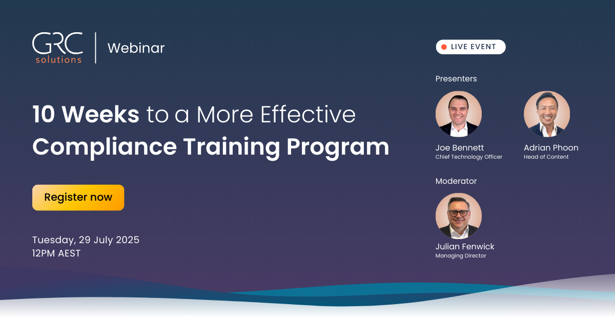 Led by our in-house experts, this webinar will help you strengthen your approach to compliance training—making it more engaging, efficient, and aligned with your organisation’s needs.